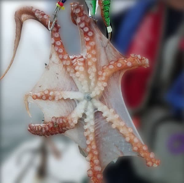 주의해야 할 점은 문어의 이빨이나 빨판의 힘은 위협적인 데다 먹물을 쏠수도 있으므로, 잡아 올린 후에는 최대한 빠르게 쿨러나 살림망에 집어넣는 것이 좋습니다.