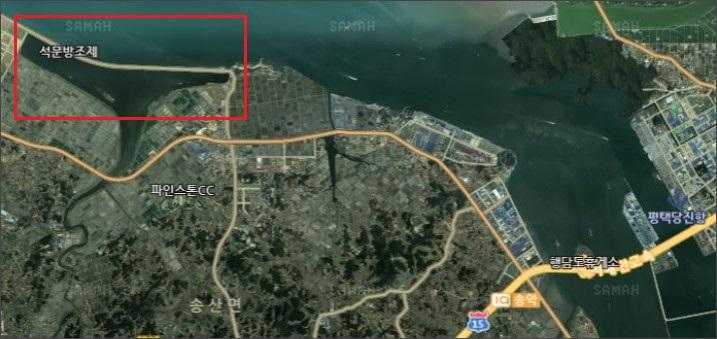입구에는 한국농어촌공사가 있고 방조제의 끝에는 한국 토지주택공사가 있습니다. 석문방조제는 전 구간이 밑걸림과 모기떼로 악명 높은 곳입니다.