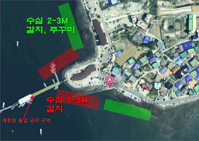 하지만, 가을이 되면 이곳은 최고의 시즌으로 밤에 하는 갈치 낚시부터 잡힐 수 있는 거의 모든 어종들이 올라오게 됩니다. 단점으로는 계류장이 있는 선착장 초입, 슬로프 부근으로 한정되는 낚시 가능 구역이 그렇게 넓다고 할 수 없기에 많은 인원들이 낚시할 수는 없습니다. 선착장 부근에는 횟집과 식당도 많아 가족 단위로도 좋은 곳입니다.